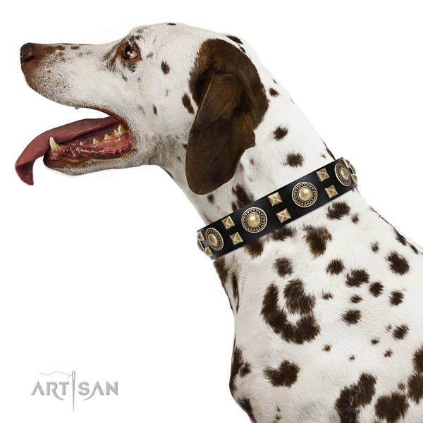 - :: "Amazing Treasure" FDT Artisan Black Leather Dog Collar with Brass Decorations