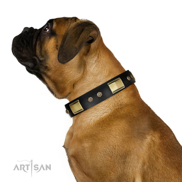 - :: FDT Artisan 'Black Sun' Leather Dog Collar with Brass Plated Decorations - 1 1/2 inch (40mm) wide